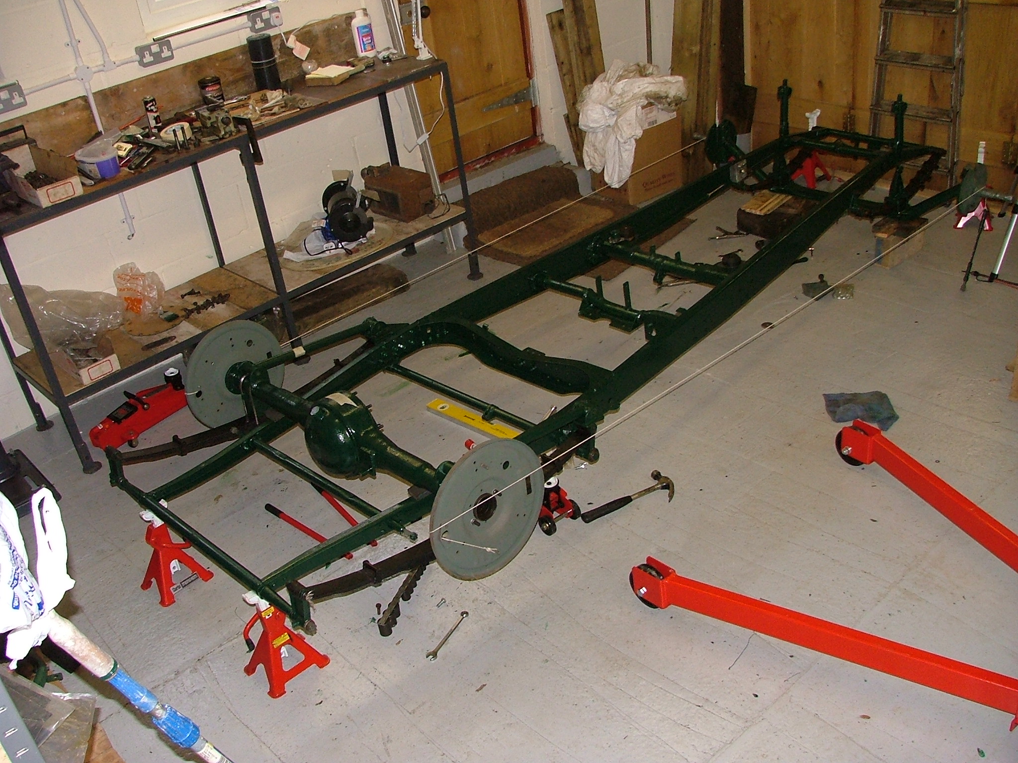 Chassis, front axle alignment check, note: origonal factory string